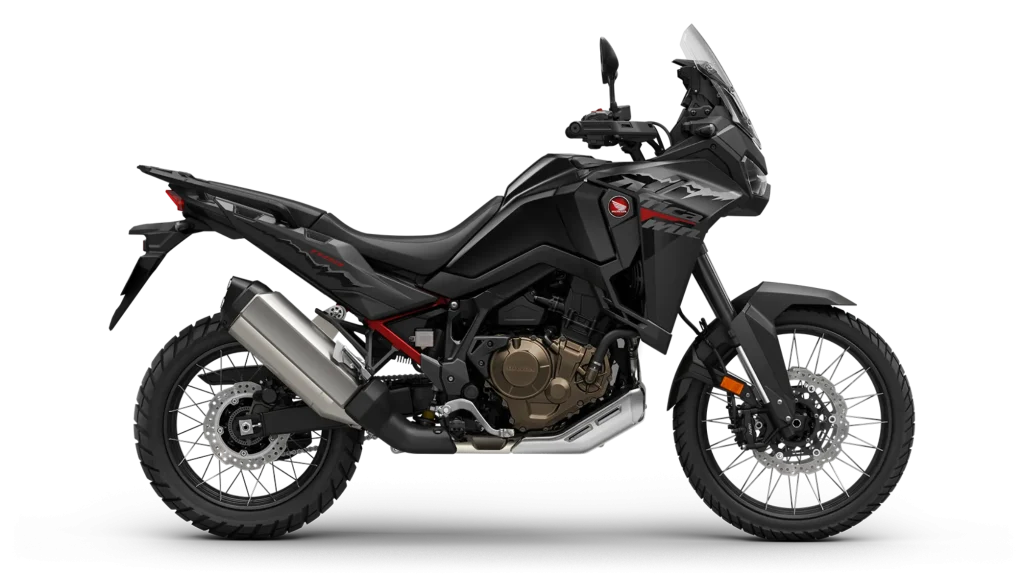 - Africa Twin 2025 en Negro Ballistic Mate Metalizado, con nuevos detalles en rojo.
